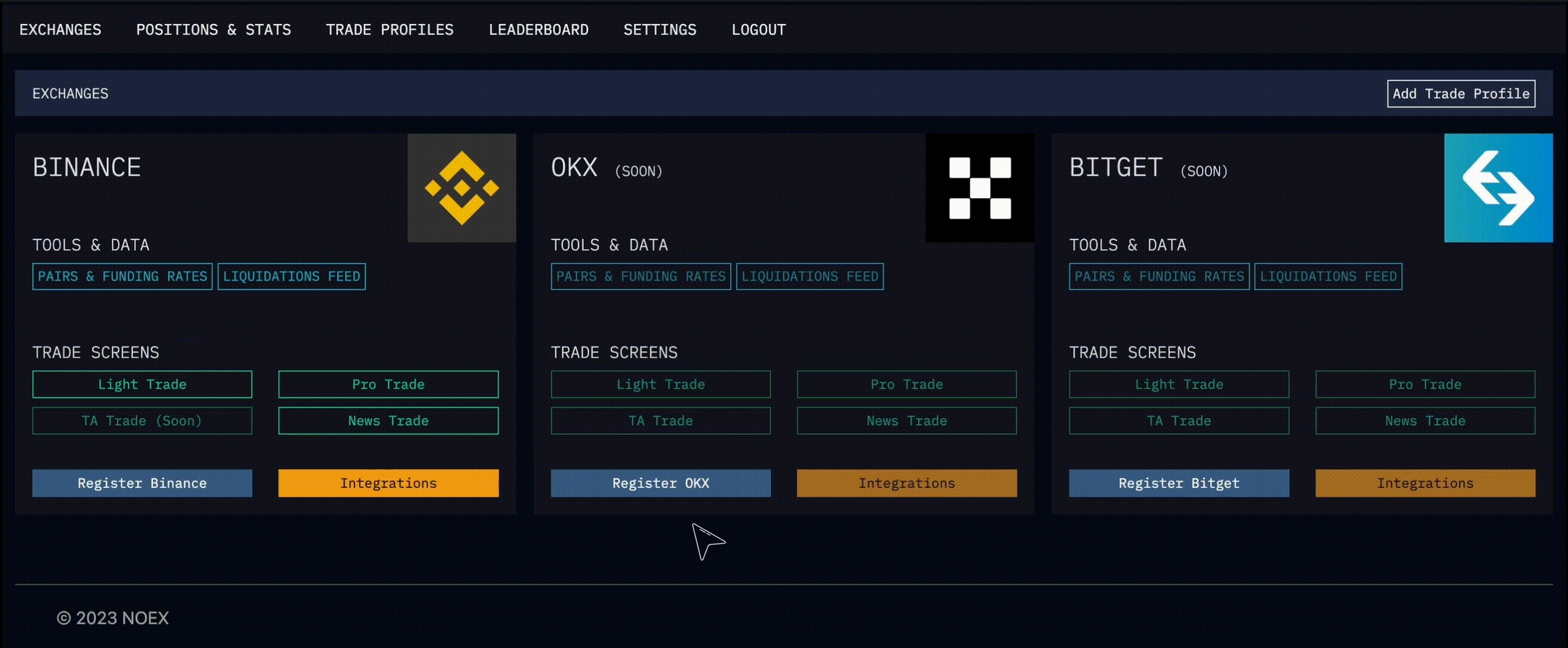 I will now show you how you can integrate multiple accounts from the same or different exchanges into NOEX.