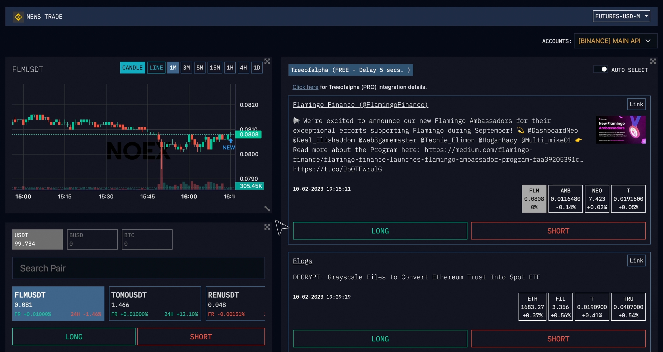 Now I will explain how you can use NOEX's News Trade screen.