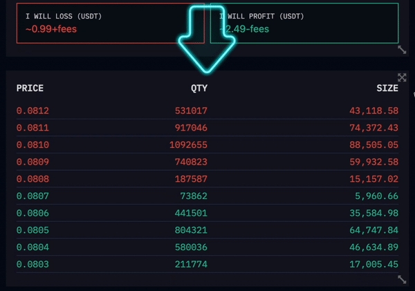 And just below that, you can see the Order Book of the selected pair.